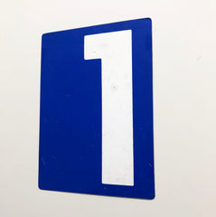 Vintage metal blue and white reclaimed gas station number sign from the mid 20th century.