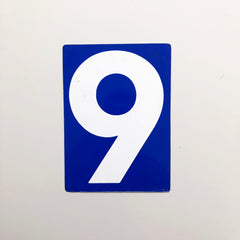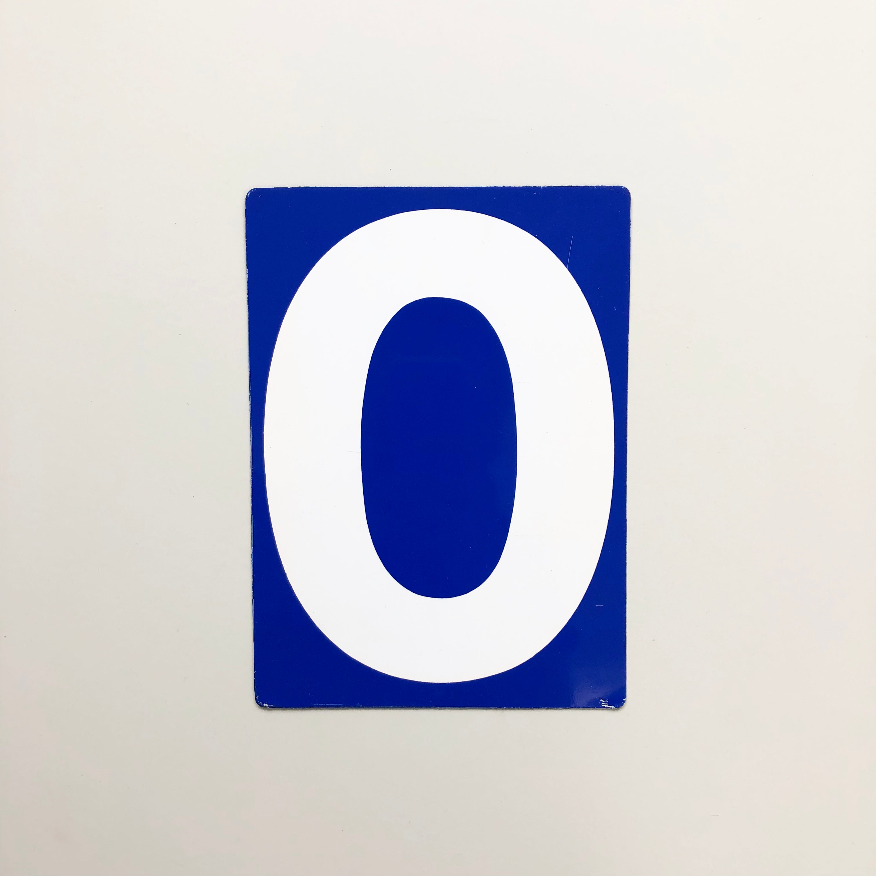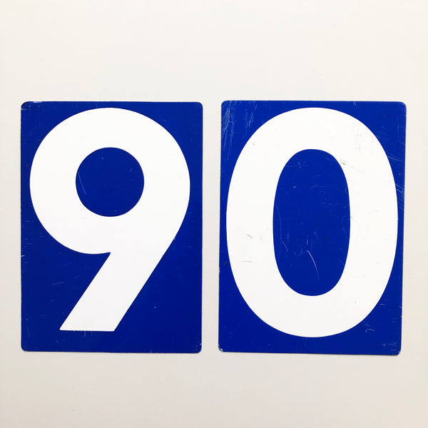 Vintage metal blue and white reclaimed gas station number sign from the mid 20th century.