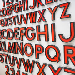 Salvaged from an old cinema in Nottingham, these fabulous vintage cast metal and red perspex letters make a bold statement wherever they hang.