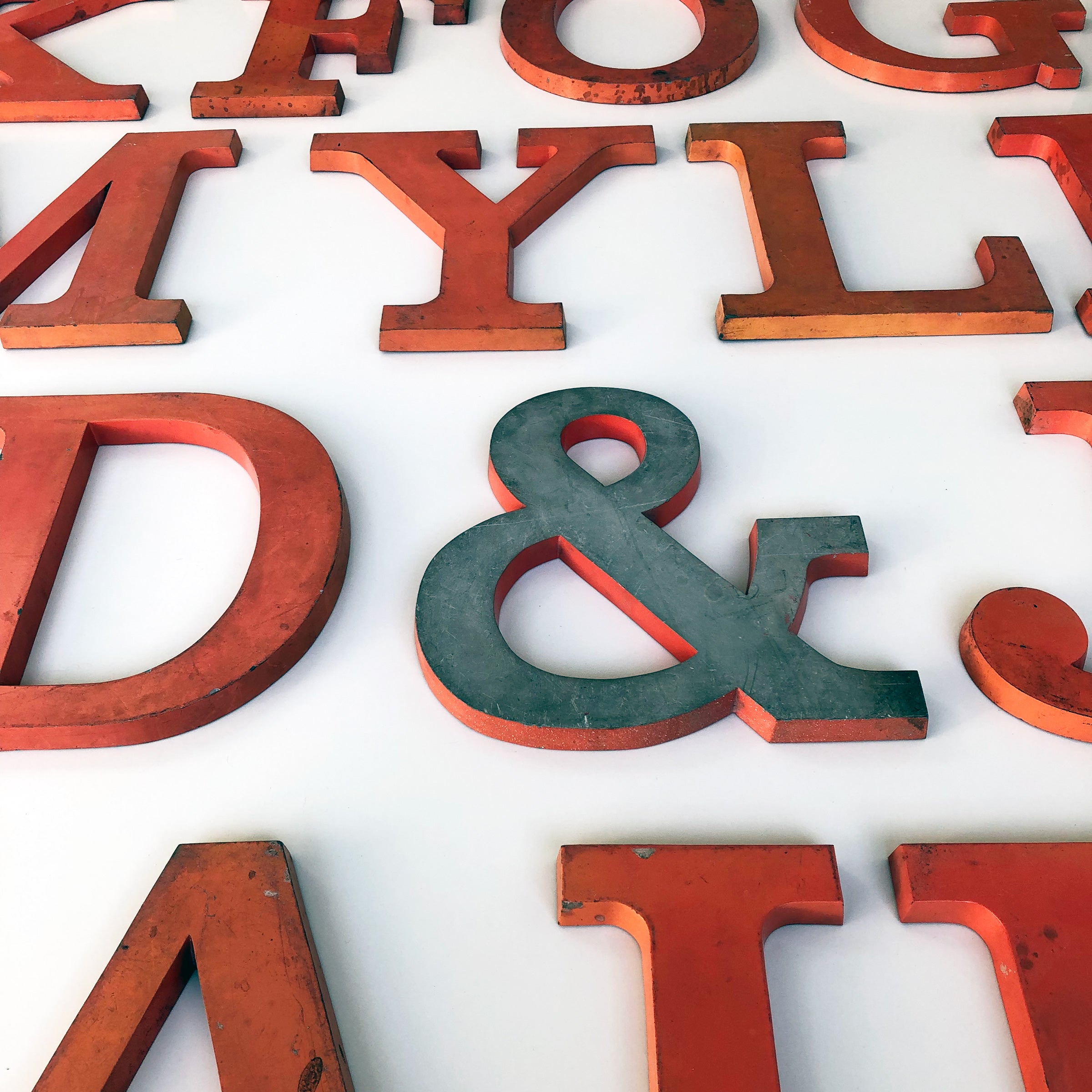 Heavy cast metal letters salvaged from an old letter factory, these are vintage and unique with wonderful patina!