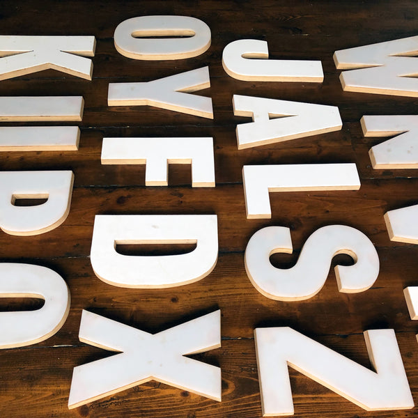 Salvaged from an old letter factory, fantastic wooden ply and white perspex letters.