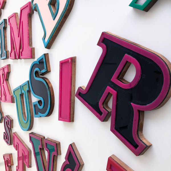 Salvaged from an old letter factory, fantastic wooden ply and multicoloured  perspex letters, wonderful selection of colours.