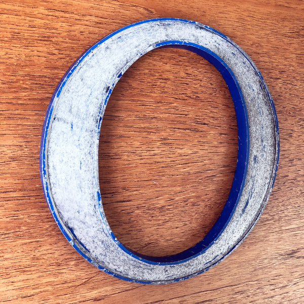 Cast metal blue distressed letters iclarendon font. Reclaimed from an old letter factory, these are vintage and unique with wonderful patina!