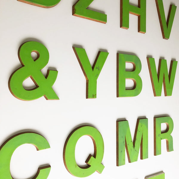 Big and Green! These supersized letters are made from perspex and banded ply Salvaged from an old letter factory, these are vintage and one of a kind!