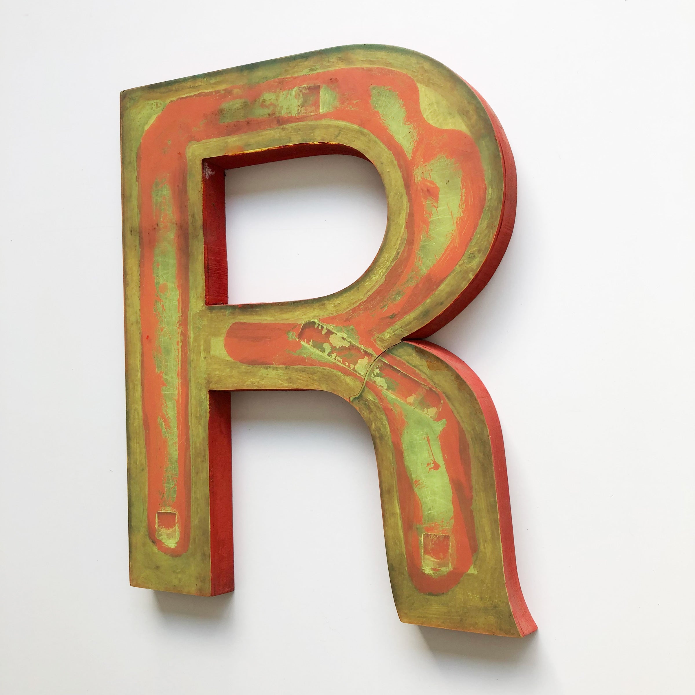 This letter R is 13 inches x 10 inches x 1 inch (approx).