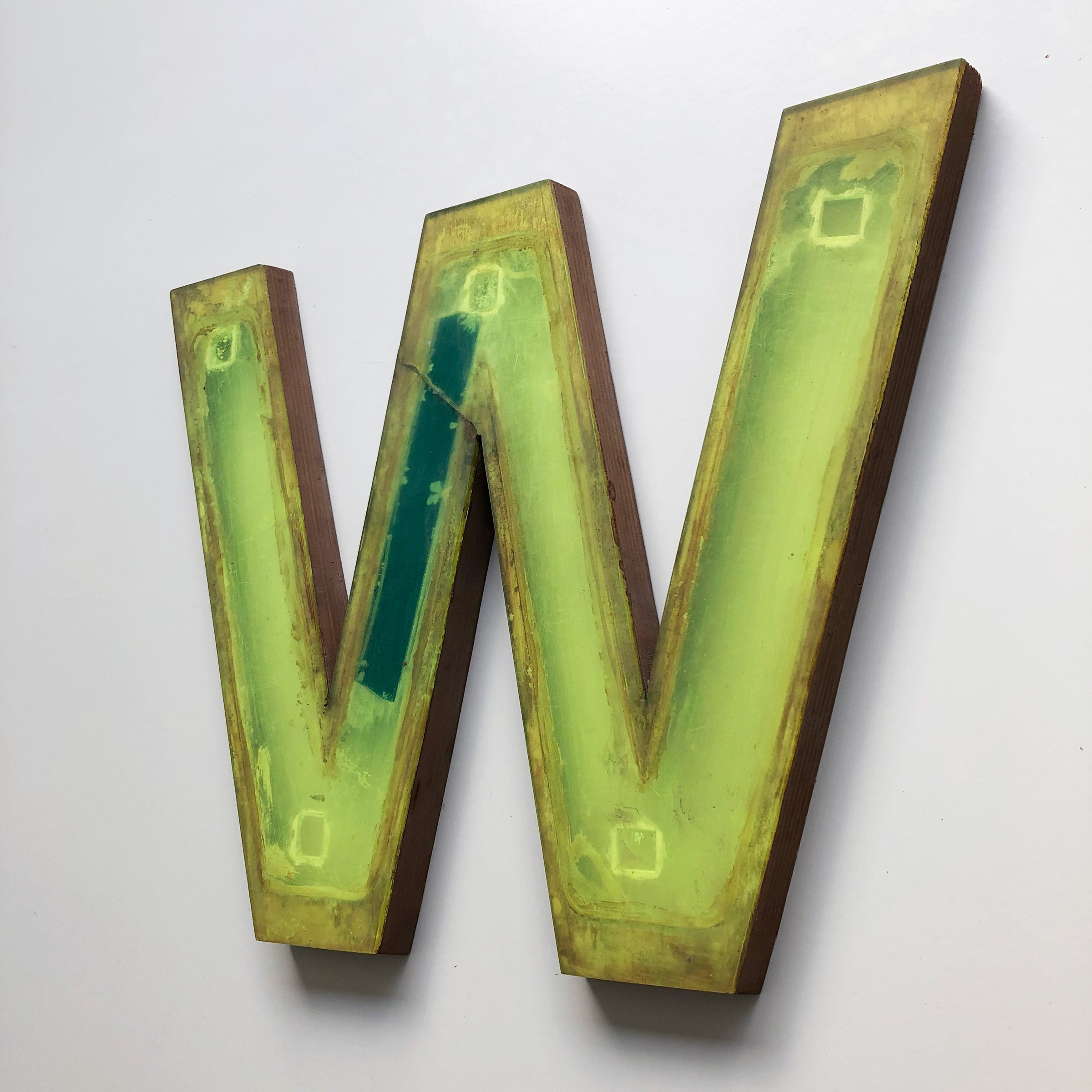 This collection are probably prototypes, with perspex and plywood edges, many have cracks, repairs and are covered in paint -  a lovely piece of typography history, definitely showing their beautiful age!