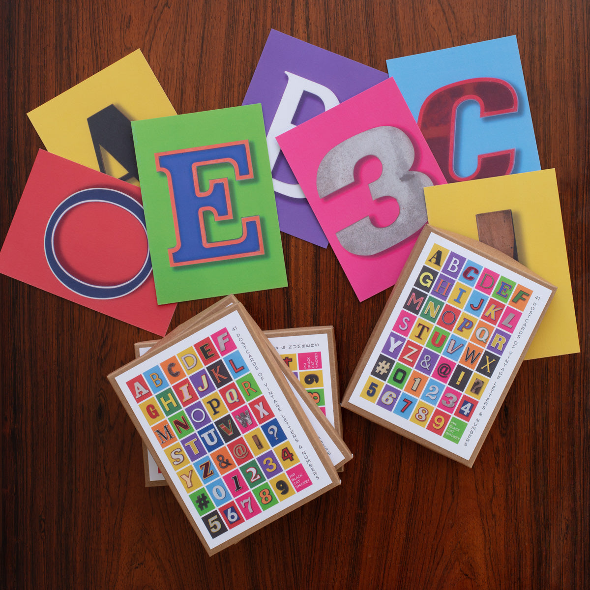 Each set contains the letters A-Z, Numbers 0-9 and special characters &, @, !, ? & # - 41 individual postcards in total.