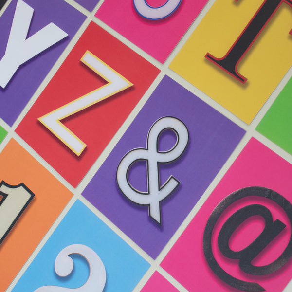 Using our fabulous original vintage letters we have created two different complete Alphabet and Number sets! Colourful and very fun, they can be used in many ways. Great for framing,