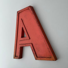 Heavy and chunky metal orange letters. Salvaged from an old disused letter factory, these are vintage, unique and wonderfully well used!
