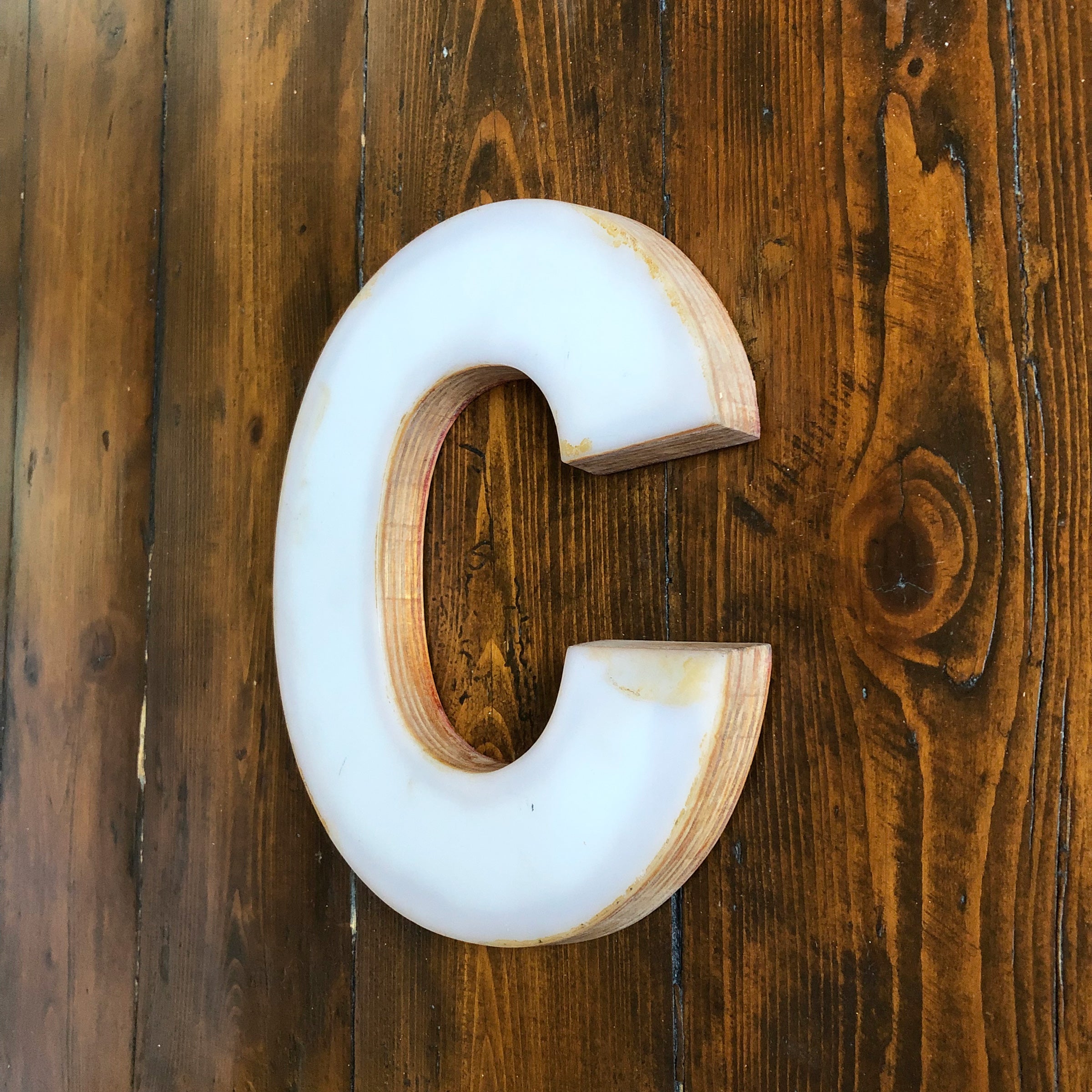 This letter C is 9 1/2 inches x 8 1/2 inches x 1 inch (approx).