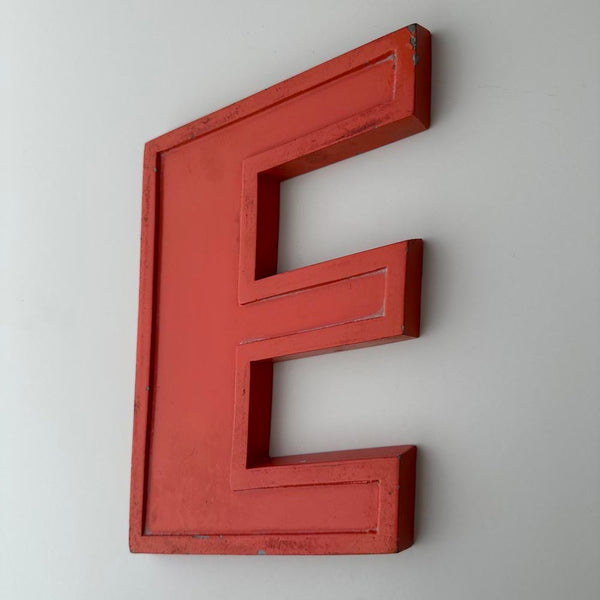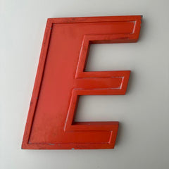Heavy and chunky metal orange letters. Salvaged from an old disused letter factory, these are vintage, unique and wonderfully well used!
