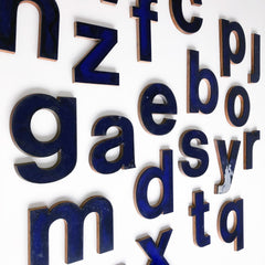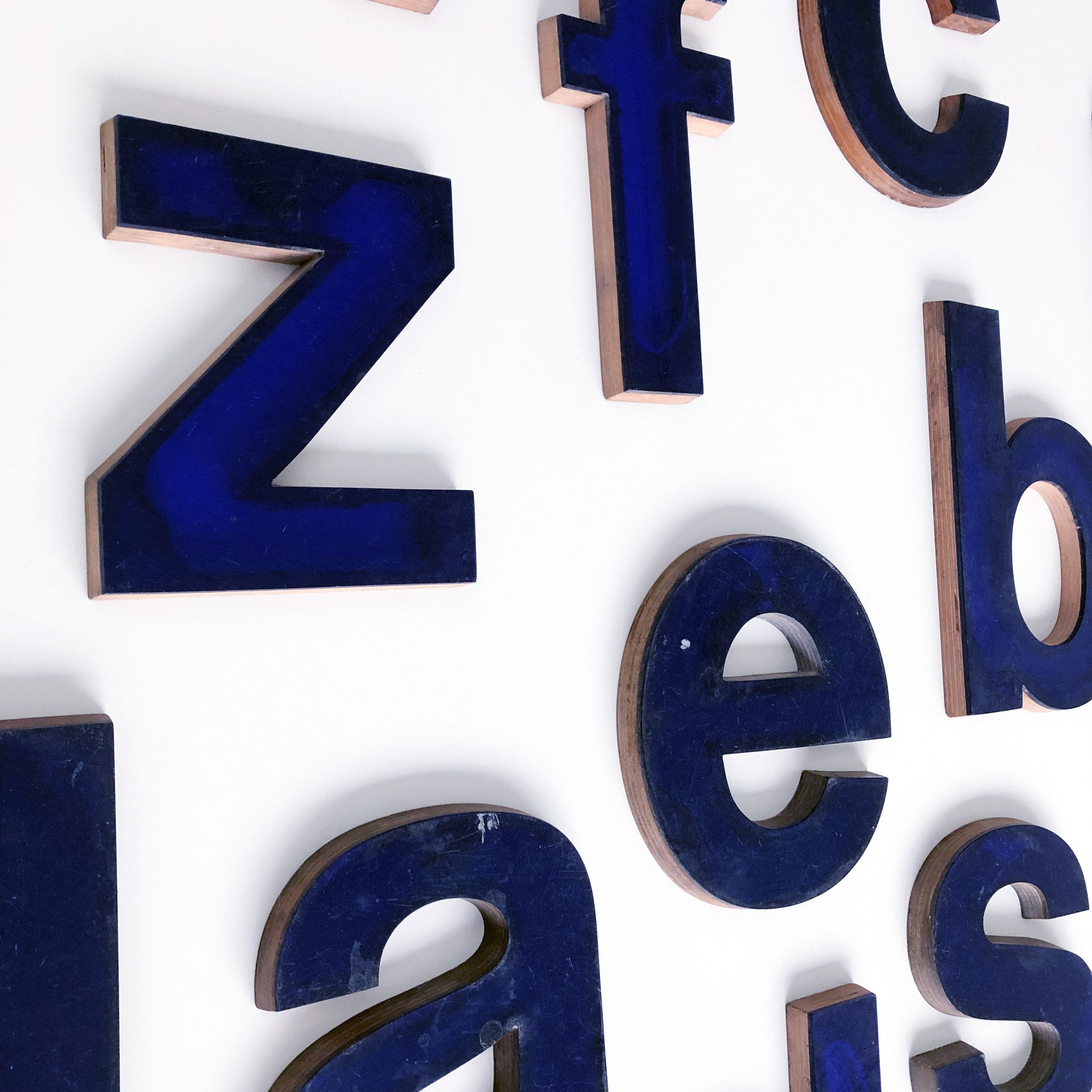 These beautiful lowercase letters are made from blue perspex and banded plywood, salvaged from an old letter factory, these are vintage and one of a kind!