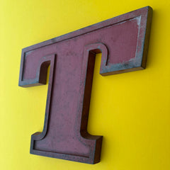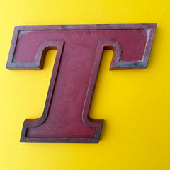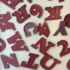 Heavy and chunky metal red letters and numbers. Salvaged from an old disused letter factory, these are vintage, unique and wonderfully well used!