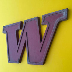Heavy and chunky metal red letters and numbers. Salvaged from an old disused letter factory, these are vintage, unique and wonderfully well used!