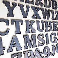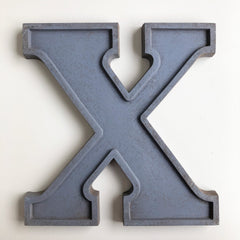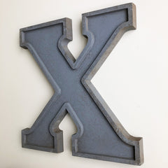 Cast metal distressed letters in Egyptain font. Reclaimed from an old letter factory, these are big, heavy and chunky with a fantastic aged patina!