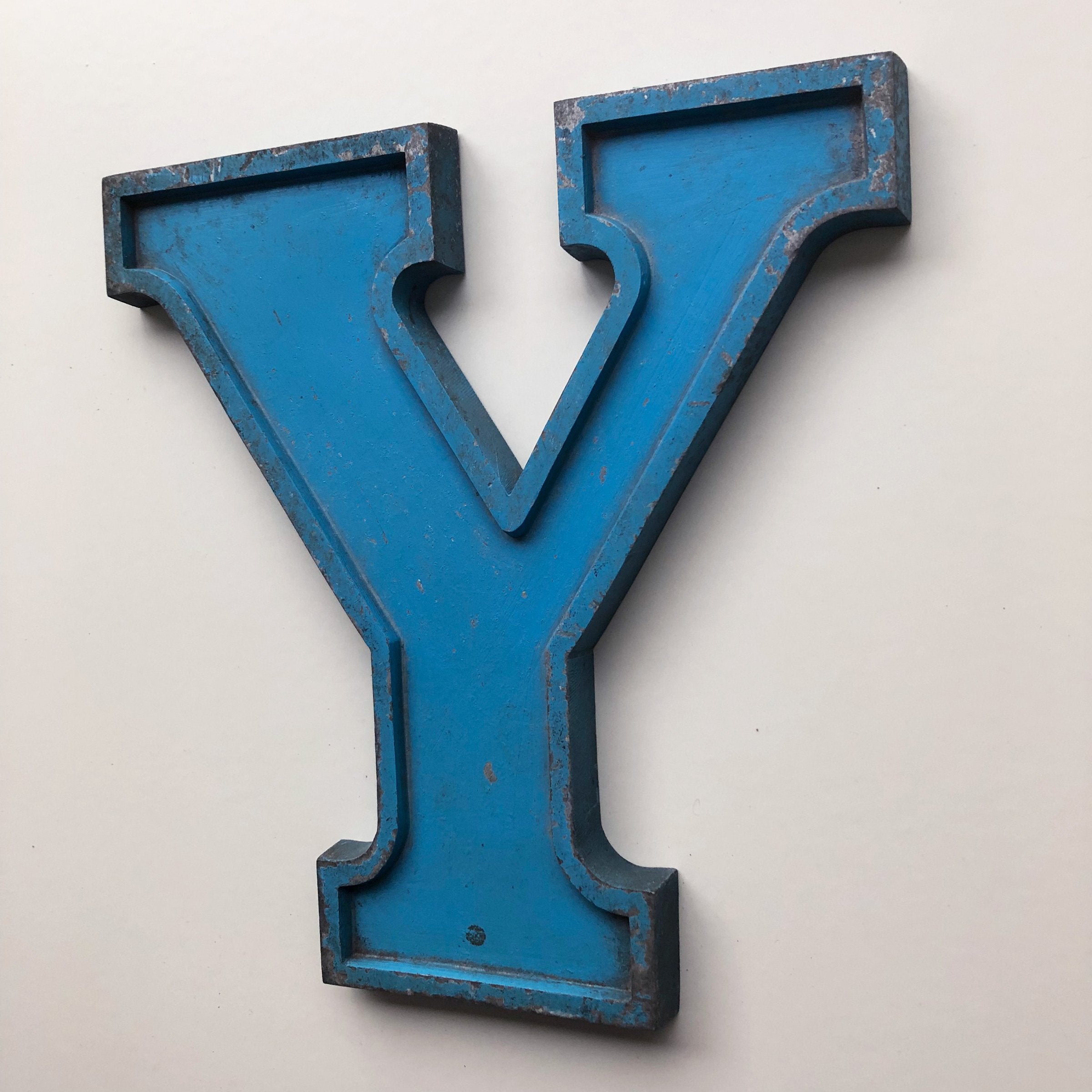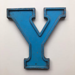 Cast metal blue letters. Reclaimed from an old letter factory, these are vintage and unique.