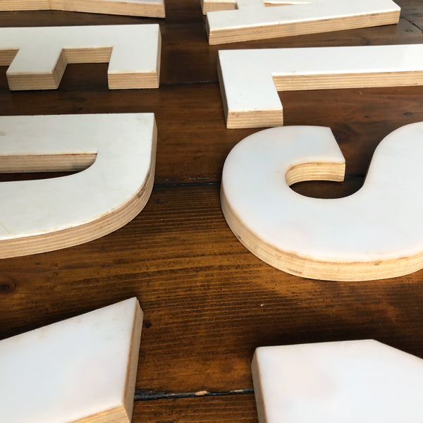 Salvaged from an old letter factory, fantastic wooden ply and white perspex letters.